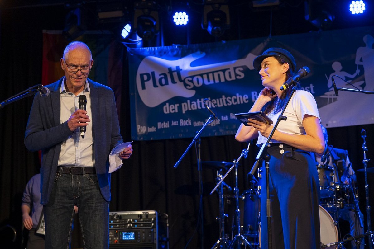 Zum Auftakt des Abends spielte die dreiköpfige Band Majanko aus Wilhelmshaven, Gewinner des letztjährigen Plattsounds-Wettbewerbs und zugleich Sieger im Local Heroes Semifinale 2025. Mit einfühlsamem Indie-Pop groovte sie das Publikum ein, das bei bester Laune blieb. Majanko spielte auch während der Juryberatung. Anschließend holte Annie Heger die Jurymitglieder auf die Bühne: Dieke Günther (Platt-Blogger), Grietje Kammler (Ostfriesische Landschaft), Annika Morhaus-Kamp (Niederdeutsch-Beraterin der Schulbehörde und Musikerin), Frank Jakobs (NDR Reporter) und Marcus Bruns (Band Wippsteert).