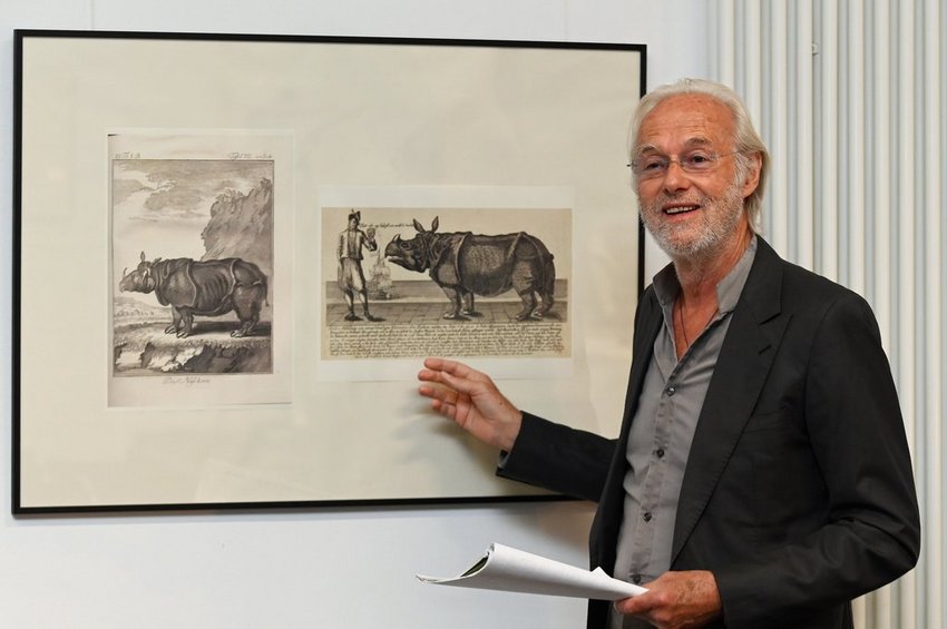 Immer wieder blickte Siemen Rühaak dem Wolf tief in die Augen, hob den Vogelkäfig hoch, in dem überraschender Weise zwei Nachtigallen saßen, stand fasziniert vor den Flugblättern zur Nashorndame Clara und hielt das Publikum mit seinem Spiel und Sprechen im Bann: Die szenische Lesung „wild.zahm.gejagt.bestaunt“ mit dem aus Film und Hörfunk bekannten Schauspieler am 10. September im Museum am Schölerberg führte durch mehrere Jahrhunderte.